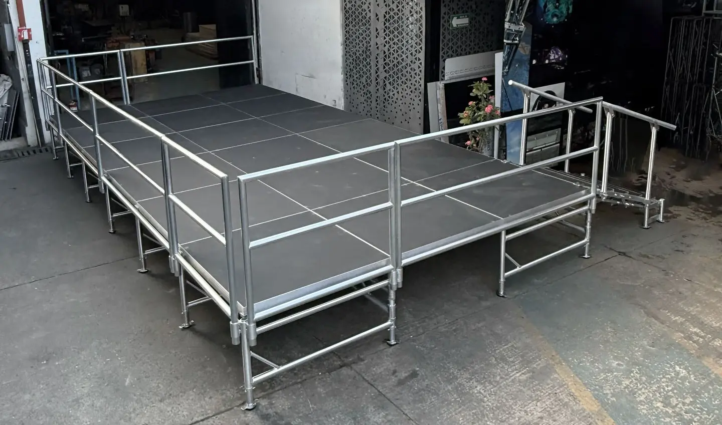 Cada módulo cuenta con refuerzo estructural interno que garantiza soporte uniforme, distribución de carga y larga vida útil. Perfecto para escenarios móviles, pistas y estructuras elevadas donde la seguridad es prioridad.