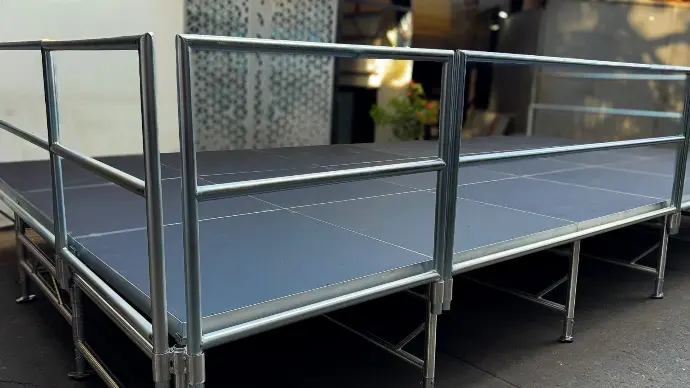 Barandal perimetral para mayor seguridad en escenarios elevados.