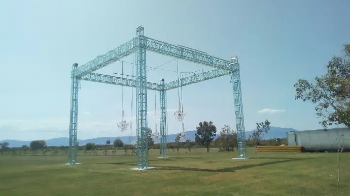 Este sistema ha sido diseñado para conciertos, espectáculos y eventos políticos, donde se necesita una estructura funcional que optimice el espacio sin sacrificar estabilidad.