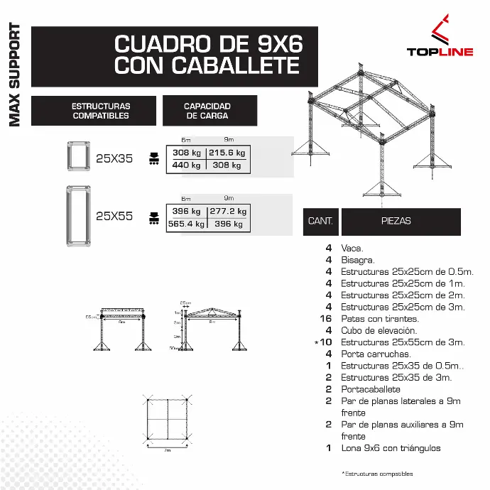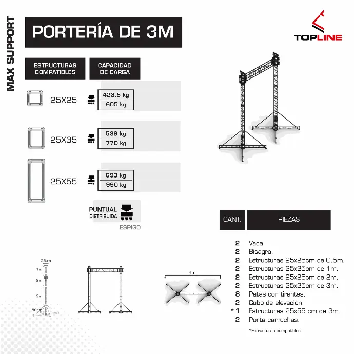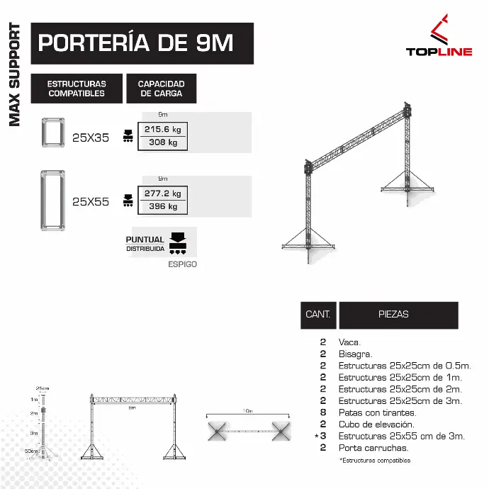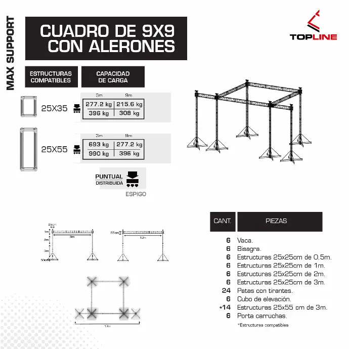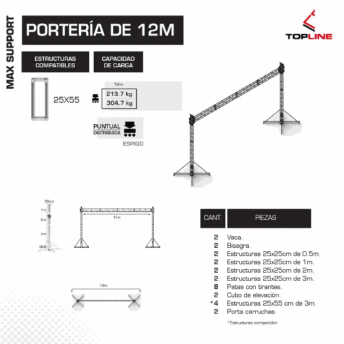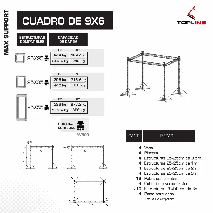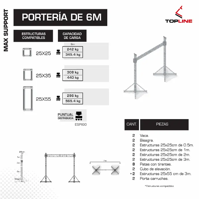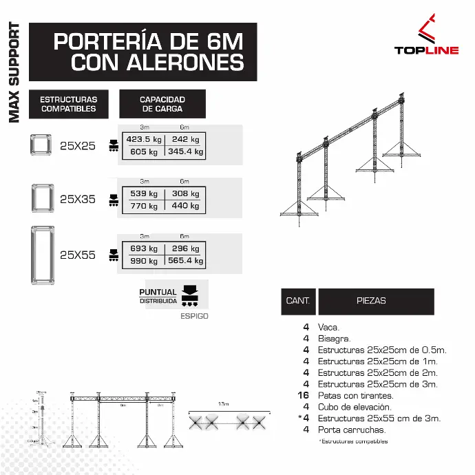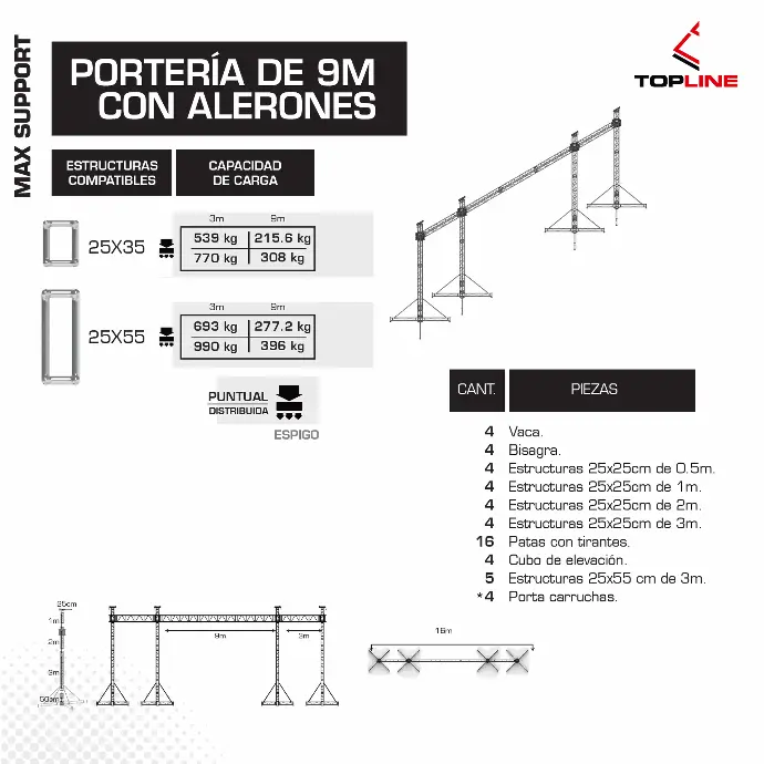 - Flexibilidad total Compatible con múltiples configuraciones: portería, cuadro, cuadro con alerones, caballete y combinaciones personalizadas