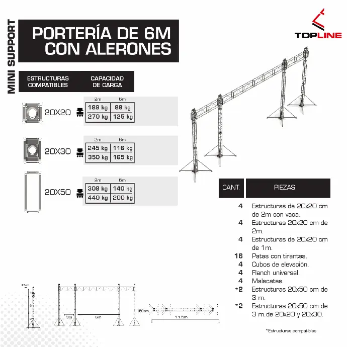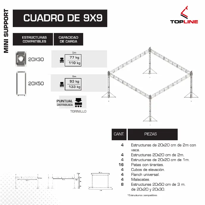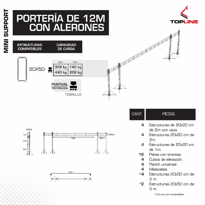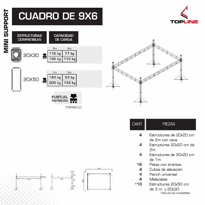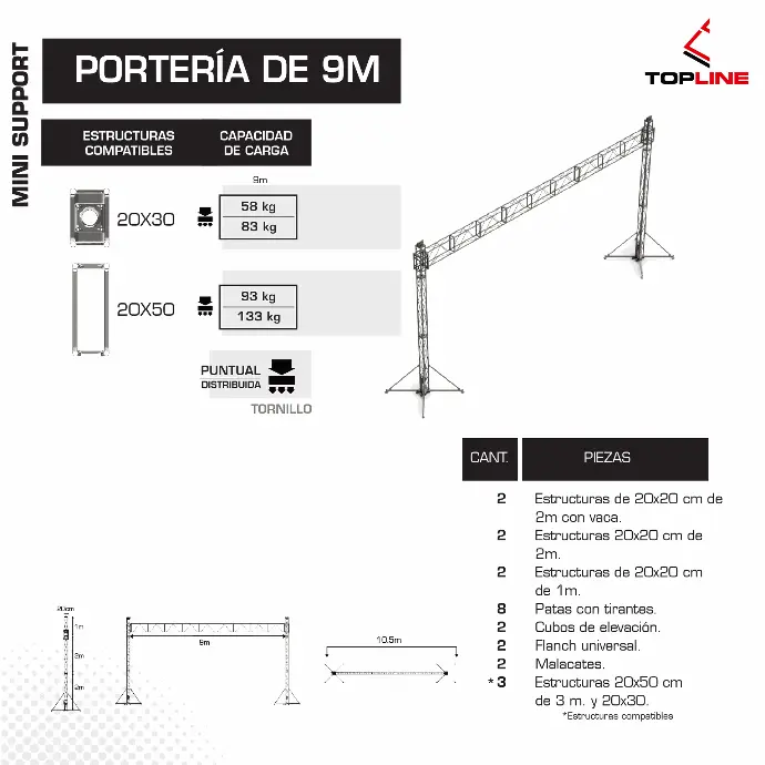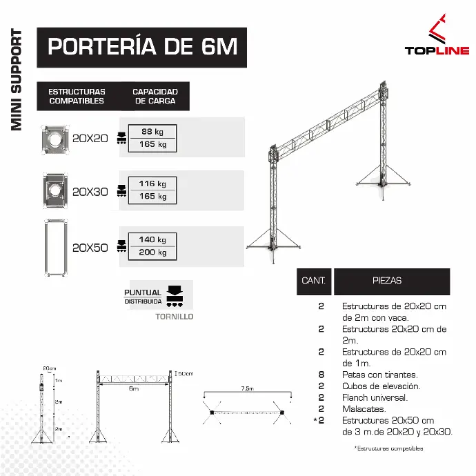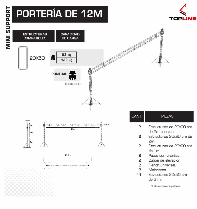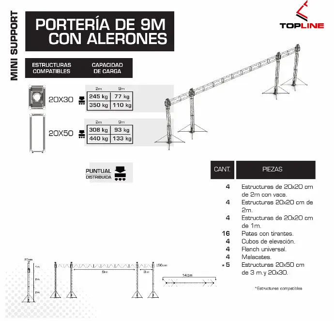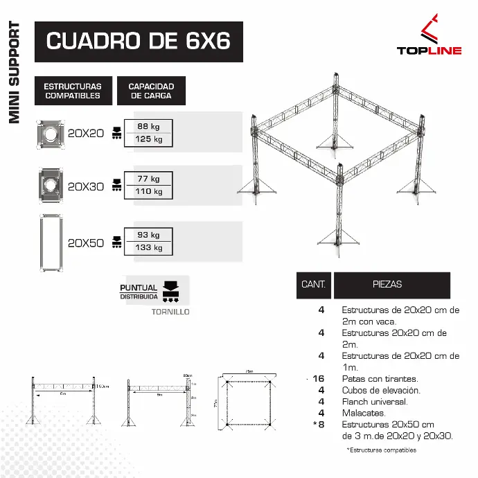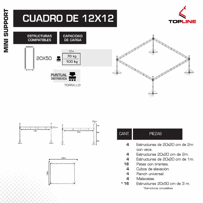 El Mini Support de acero, para eventos que requieren una solución de elevación de menor tamaño, pero con la misma robustez y confiabilidad.